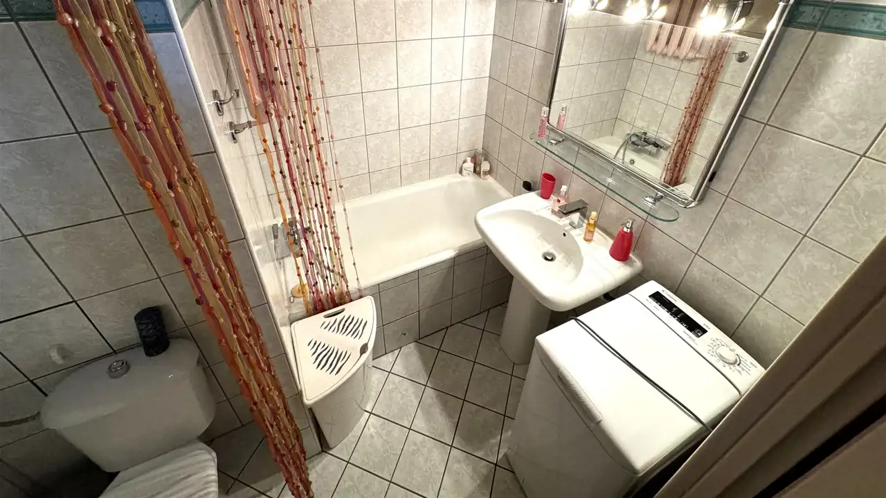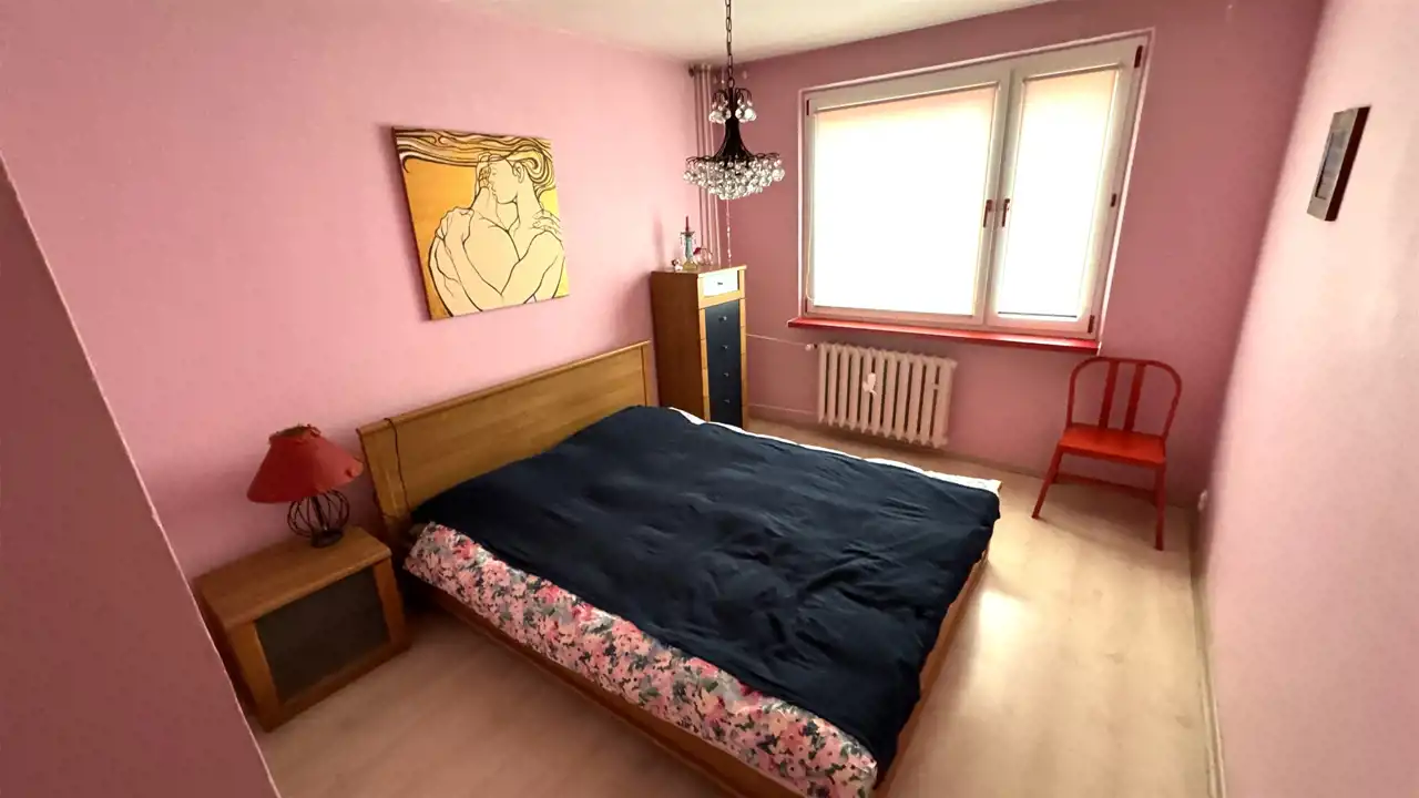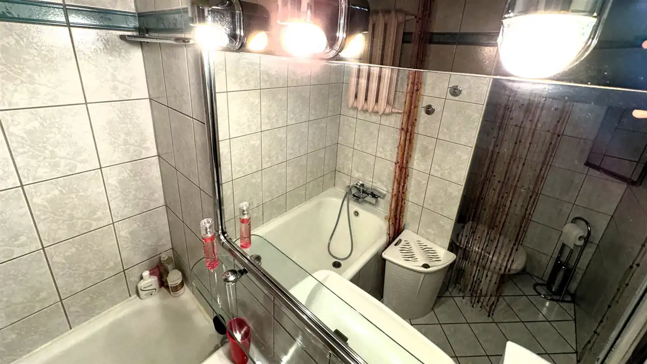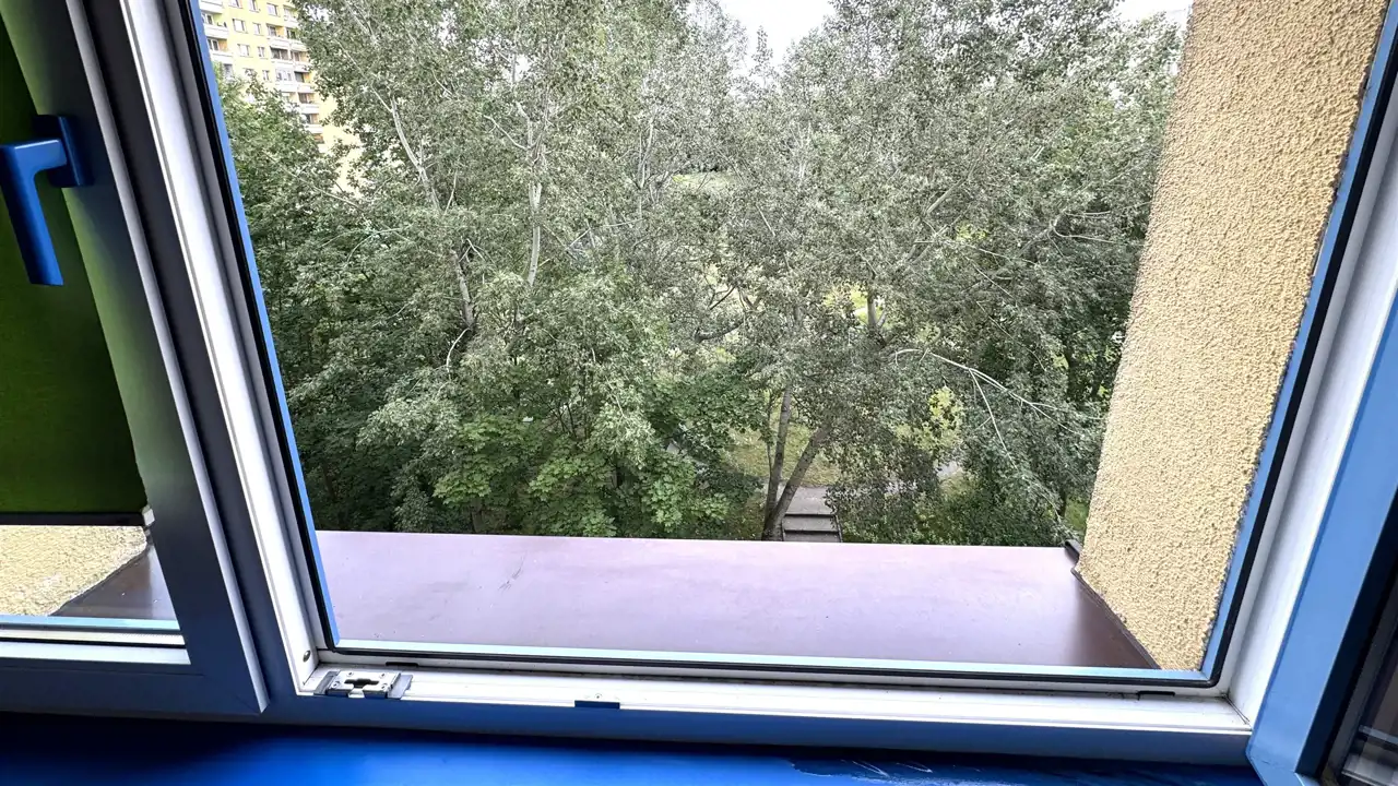Dwustronne mieszkanie na 5 piętrze (winda z poziomu 0). Powierzchnia: 47,1 mkw. Spółdzielczo-własnościowe z Księgą Wieczystą. Dwa pokoje, kuchnia, przedpokój, łazienka z WC. Do pokoju dziennego (strona świata S-W) przylega duży balkon. W przedpokoju duże szafy w zabudowie. Drzwi wejściowe antywłamaniowe i wyciszone. Dobrze zagospodarowana niezależna kuchnia ze stołem i krzesłami. Łazienka z wanną. Do mieszkania przynależy piwnica. Ponadto do wspólnego użytku dla mieszkańców suszarnia oraz wózkownia.