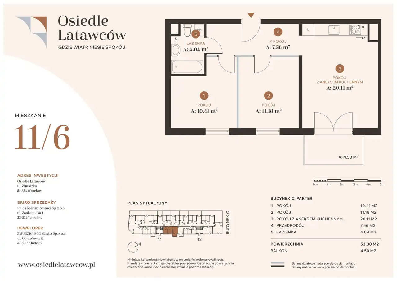 Lokalizacja przy ul. Żmudzkiej zapewnia szybki dostęp do kluczowych punktów miasta – w pobliżu znajdują się sklepy, szkoły, przedszkola, punkty usługowe, a także tereny rekreacyjne i sportowe. Bliskość obwodnicy AOW i dobrze rozwinięta komunikacja miejska gwarantują sprawne połączenie z centrum i innymi częściami Wrocławia.