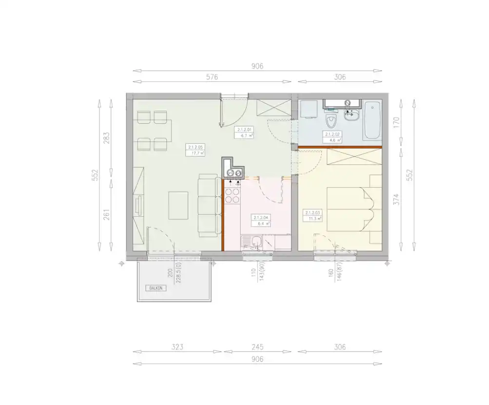 - Charakterystyka mieszkania 46.7 m2, 2 pokoje