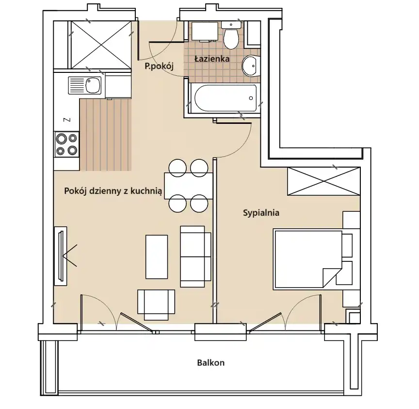 - Charakterystyka mieszkania 39.2 m2, 2 pokoje