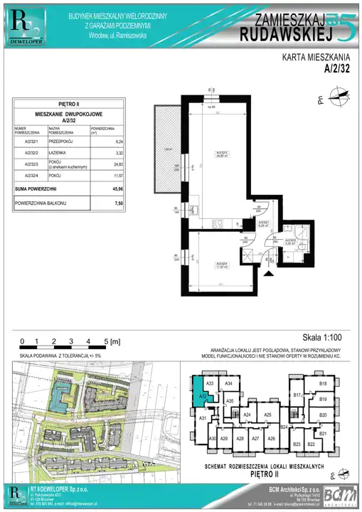 - Charakterystyka mieszkania 45.96 m2, 2 pokoje