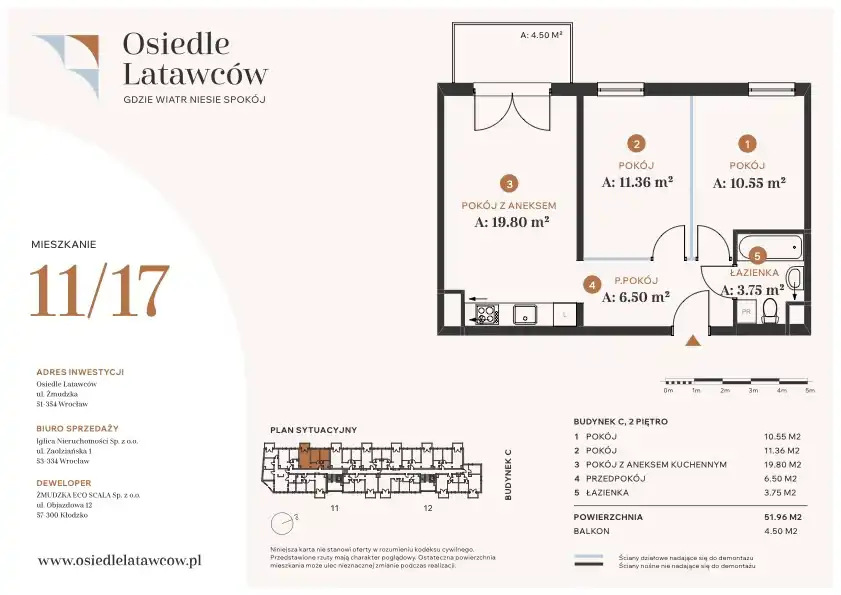 W północnej części Wrocławia, przy ul. Żmudzkiej, powstaje Osiedle Latawców – nowoczesna, kameralna inwestycja mieszkaniowa realizowana przez doświadczonego dewelopera Eco Scala. Projekt obejmuje realizację 121 mieszkań, rozmieszczonych w dwóch eleganckich, trzypiętrowych budynkach o minimalistycznej architekturze.
