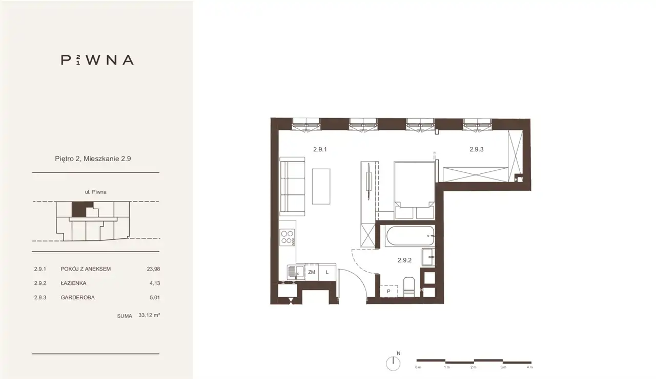 - Charakterystyka mieszkania 33.12 m2, 1 pokój