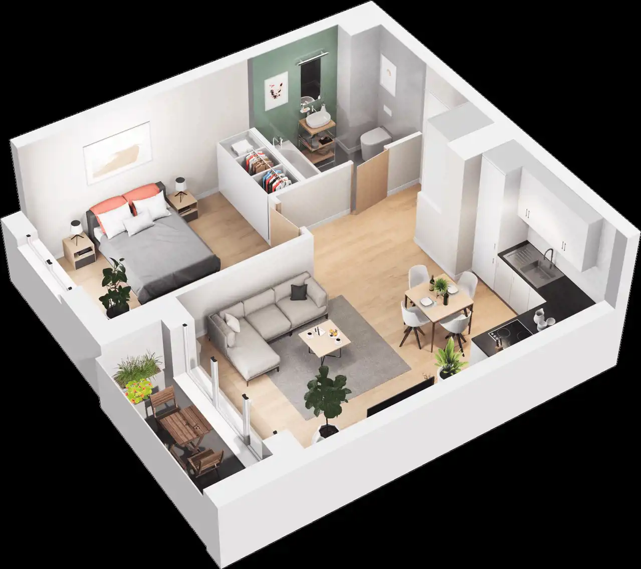 - Charakterystyka mieszkania 38 m2, 2 pokoje
