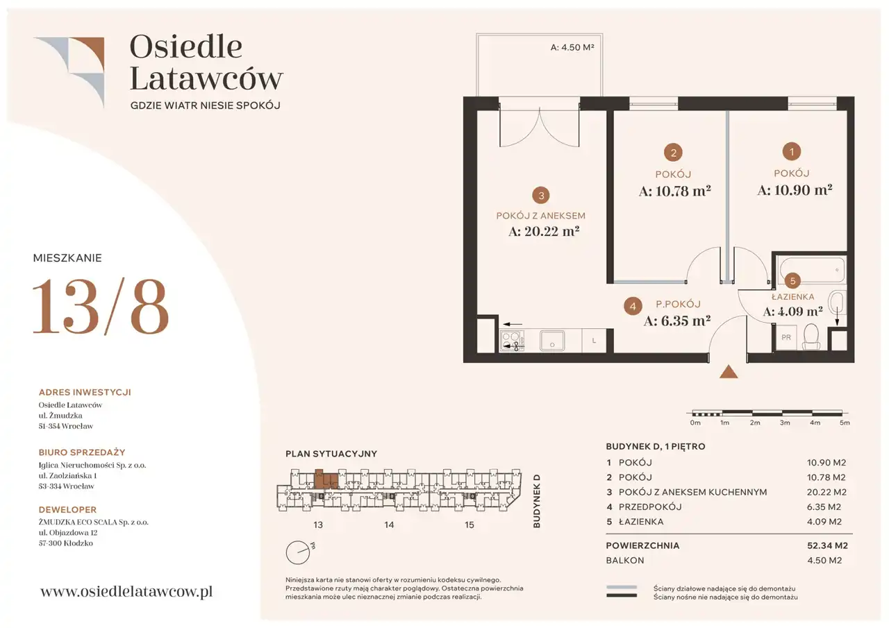 Lokalizacja przy ul. Żmudzkiej zapewnia szybki dostęp do kluczowych punktów miasta – w pobliżu znajdują się sklepy, szkoły, przedszkola, punkty usługowe, a także tereny rekreacyjne i sportowe. Bliskość obwodnicy AOW i dobrze rozwinięta komunikacja miejska gwarantują sprawne połączenie z centrum i innymi częściami Wrocławia.