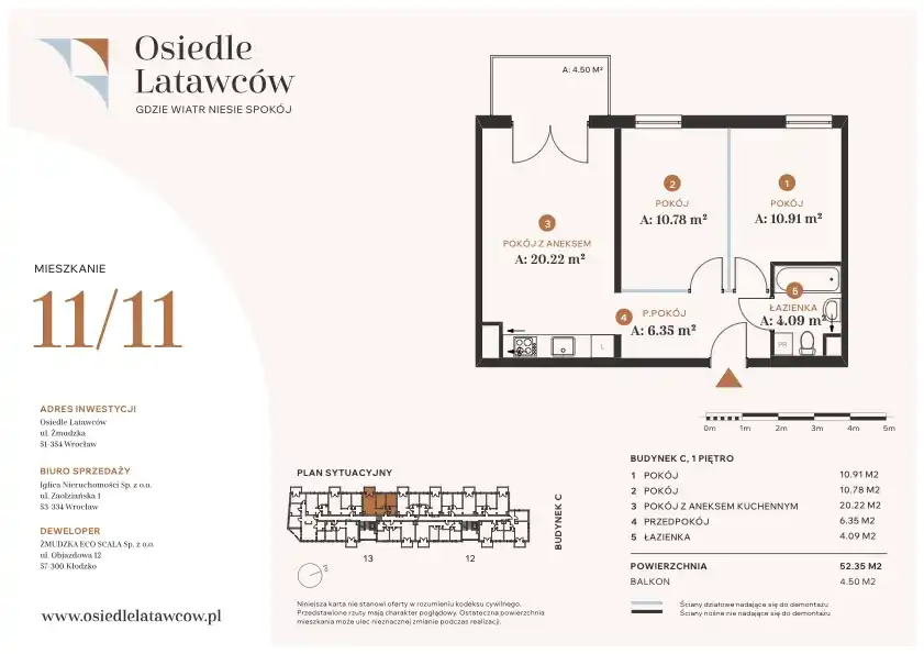 W północnej części Wrocławia, przy ul. Żmudzkiej, powstaje Osiedle Latawców – nowoczesna, kameralna inwestycja mieszkaniowa realizowana przez doświadczonego dewelopera Eco Scala. Projekt obejmuje realizację 121 mieszkań, rozmieszczonych w dwóch eleganckich, trzypiętrowych budynkach o minimalistycznej architekturze.