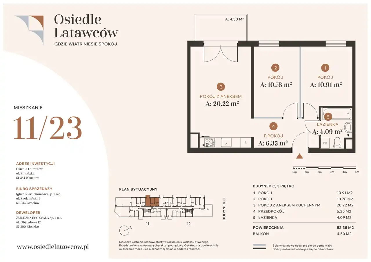 W północnej części Wrocławia, przy ul. Żmudzkiej, powstaje Osiedle Latawców – nowoczesna, kameralna inwestycja mieszkaniowa realizowana przez doświadczonego dewelopera Eco Scala. Projekt obejmuje realizację 121 mieszkań, rozmieszczonych w dwóch eleganckich, trzypiętrowych budynkach o minimalistycznej architekturze.