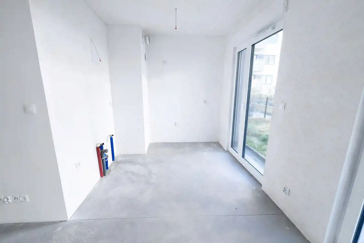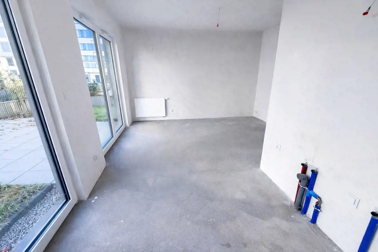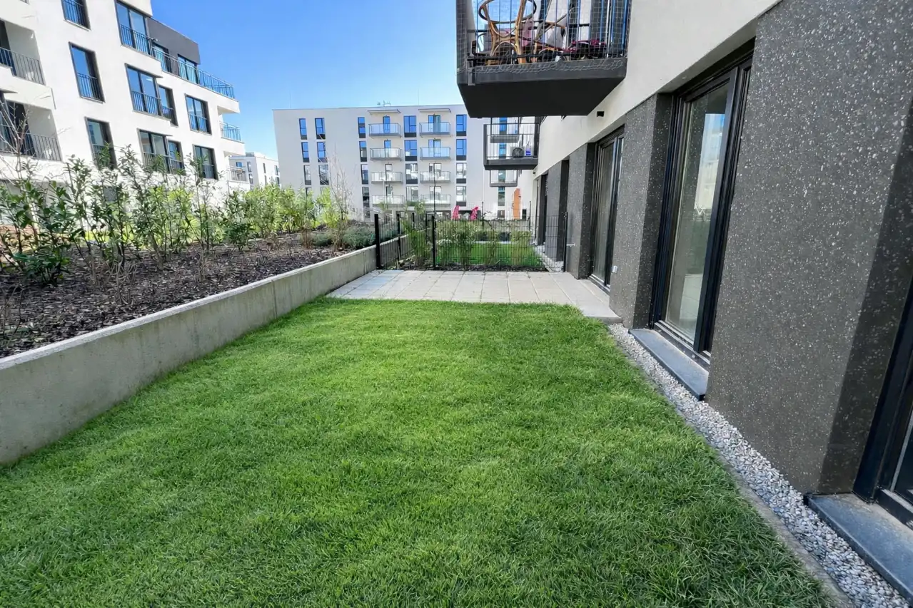 Wysokość pomieszczeń wynosi 260 cm. Mieszkanie posiada media z sieci miejskiej. Okna z ekspozycją na wschód sięgają aż do podłogi, dzięki czemu wnętrza są dobrze doświetlone. Z obu pokoi znajduje się wyjście do przynależnego ogródka. Okolica jest cicha i spokojna.