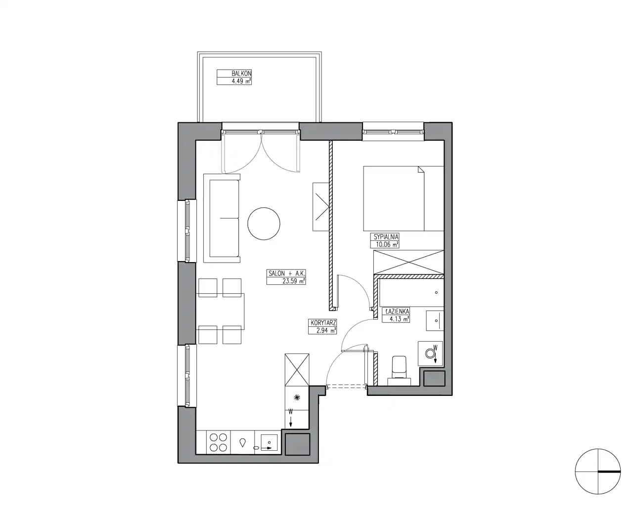 - Charakterystyka mieszkania 40.72 m2, 2 pokoje