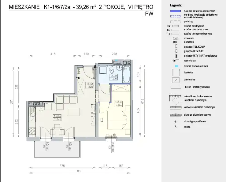 - Charakterystyka mieszkania 39.25 m2, 2 pokoje