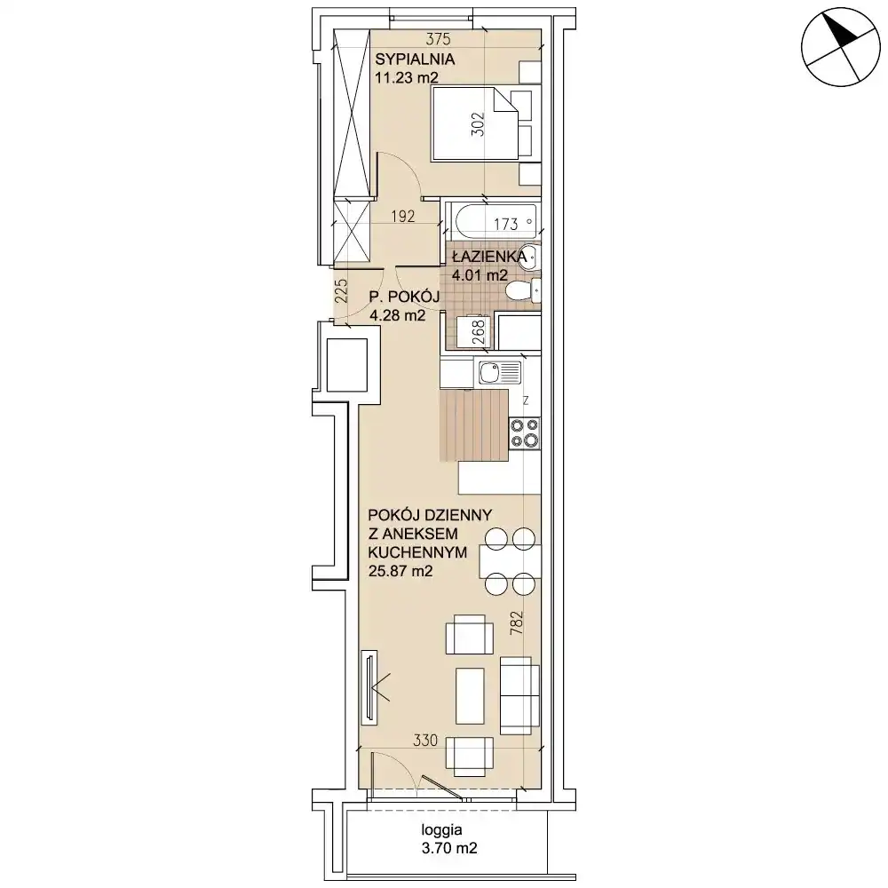 - Charakterystyka mieszkania 45.39 m2, 2 pokoje