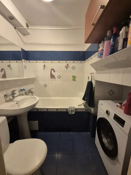 Łazienka z wanną w kaflach razem z w-c.