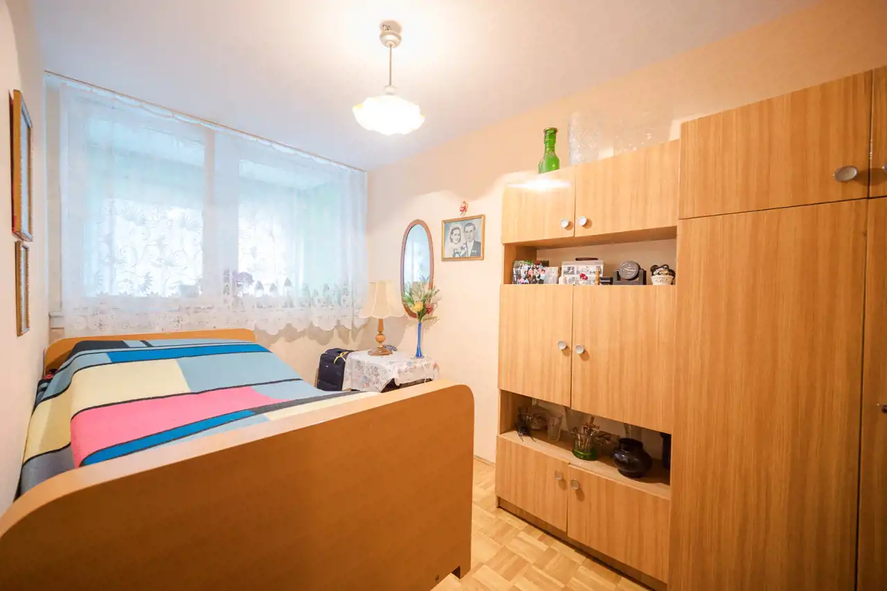 - pokój o powierzchni 9,20 z oknem wychodzącym na loggie