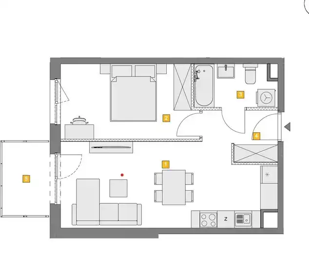 - Charakterystyka mieszkania 41 m2, 2 pokoje