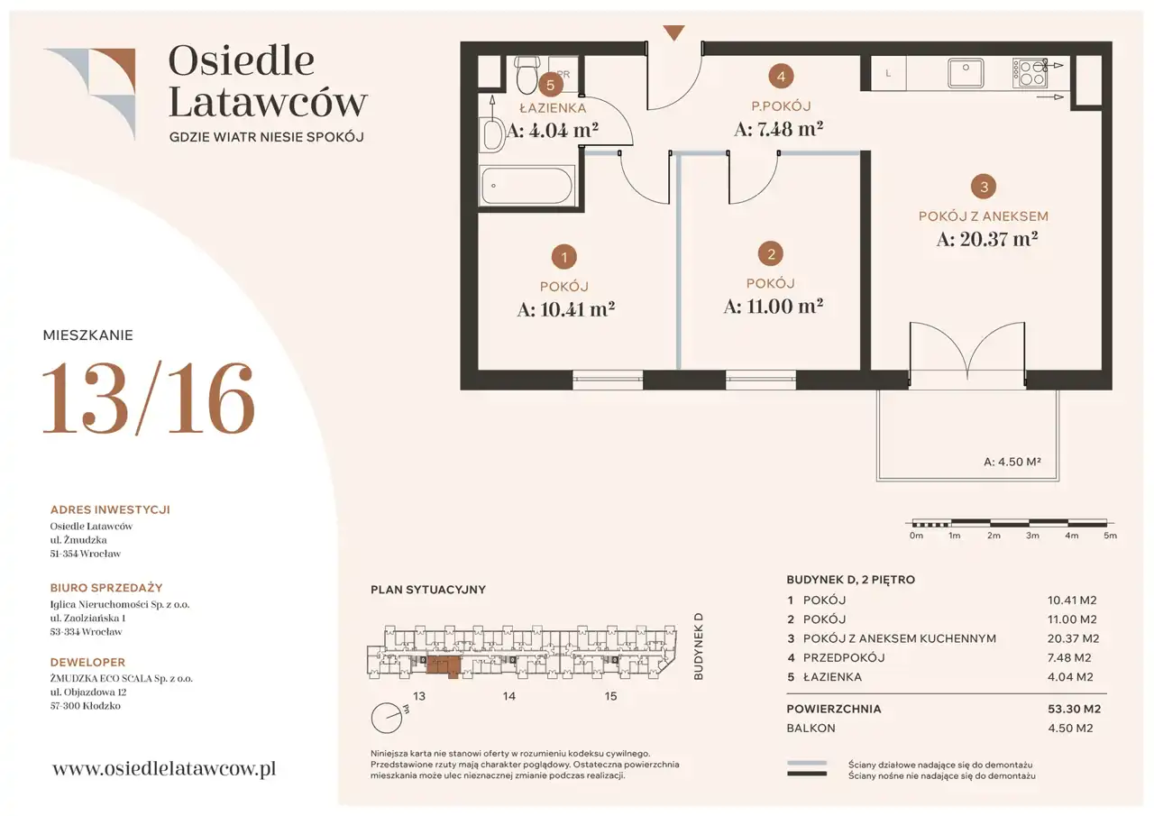 Lokalizacja przy ul. Żmudzkiej zapewnia szybki dostęp do kluczowych punktów miasta – w pobliżu znajdują się sklepy, szkoły, przedszkola, punkty usługowe, a także tereny rekreacyjne i sportowe. Bliskość obwodnicy AOW i dobrze rozwinięta komunikacja miejska gwarantują sprawne połączenie z centrum i innymi częściami Wrocławia.