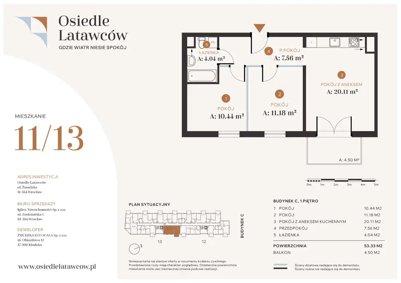 Lokalizacja przy ul. Żmudzkiej zapewnia szybki dostęp do kluczowych punktów miasta – w pobliżu znajdują się sklepy, szkoły, przedszkola, punkty usługowe, a także tereny rekreacyjne i sportowe. Bliskość obwodnicy AOW i dobrze rozwinięta komunikacja miejska gwarantują sprawne połączenie z centrum i innymi częściami Wrocławia.
