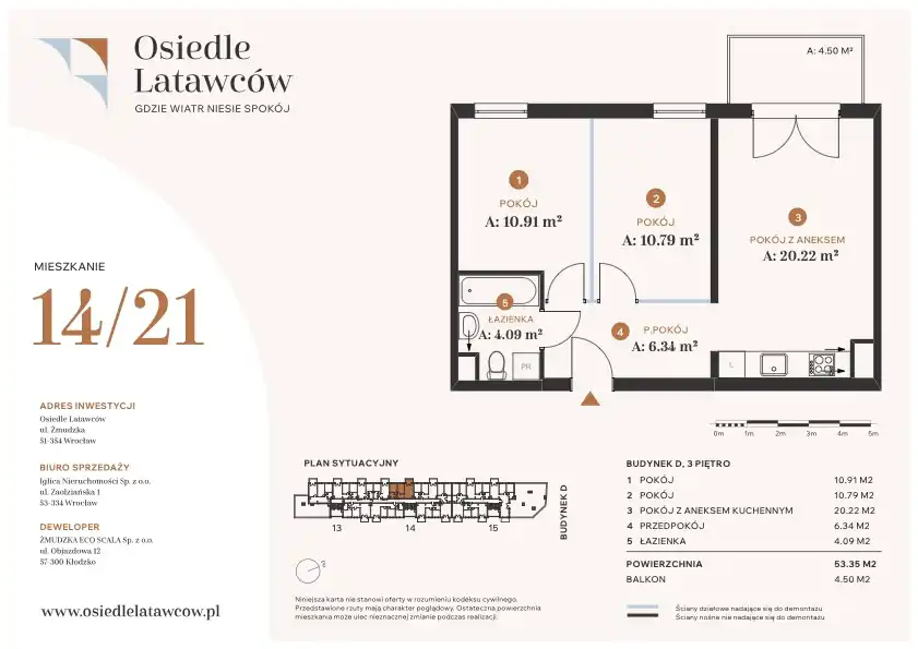 Lokalizacja przy ul. Żmudzkiej zapewnia szybki dostęp do kluczowych punktów miasta – w pobliżu znajdują się sklepy, szkoły, przedszkola, punkty usługowe, a także tereny rekreacyjne i sportowe. Bliskość obwodnicy AOW i dobrze rozwinięta komunikacja miejska gwarantują sprawne połączenie z centrum i innymi częściami Wrocławia.