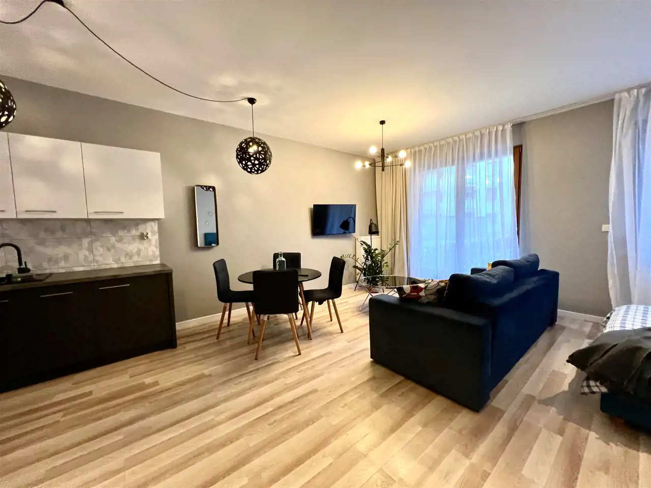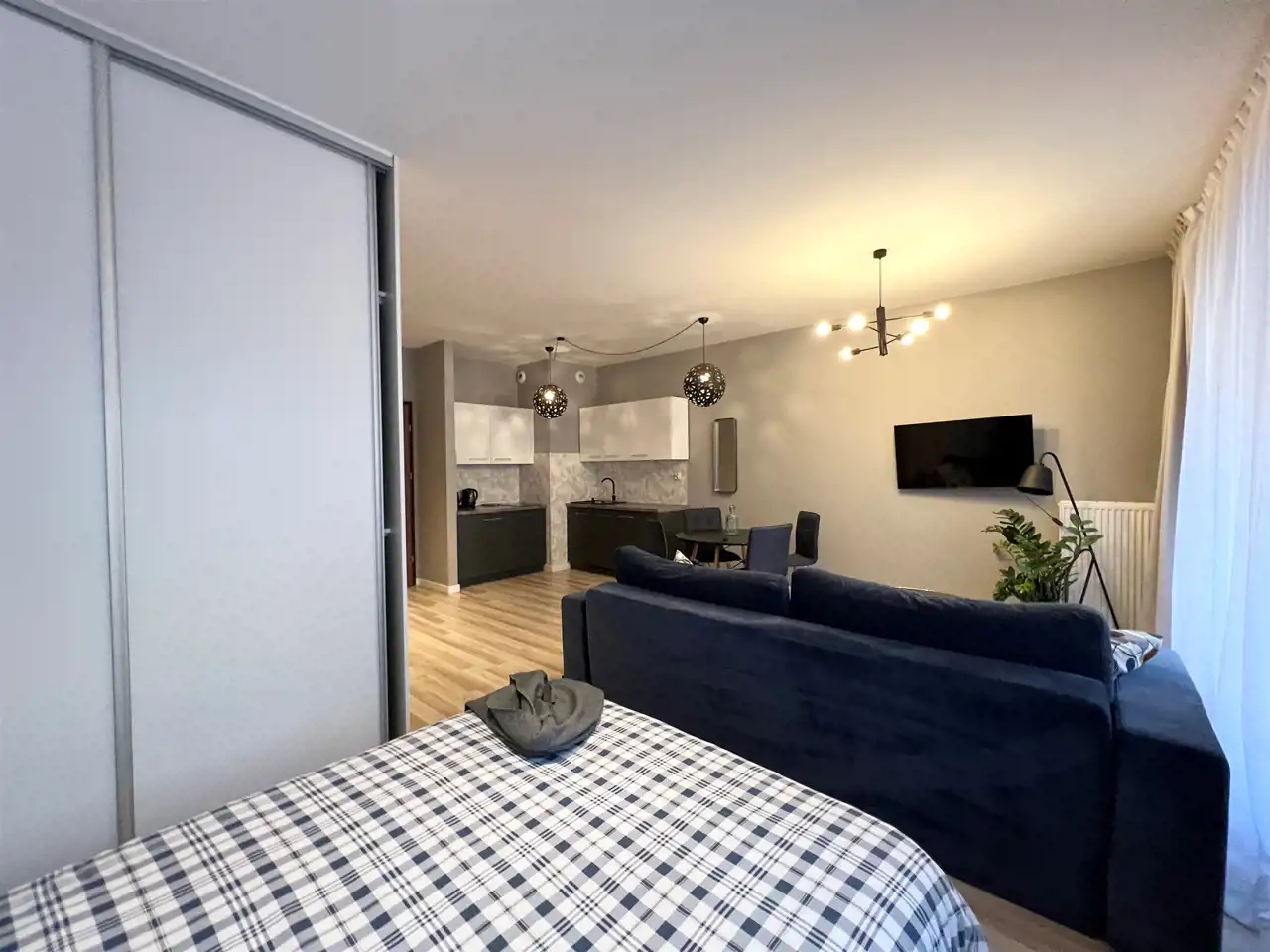 W skład wyposażenia mieszkania wchodzi: zmywarka, piekarnik, płyta elektryczna, lodówka w zabudowie, duża szafa. Ponad to mieszkanie jest w pełni umeblowane.