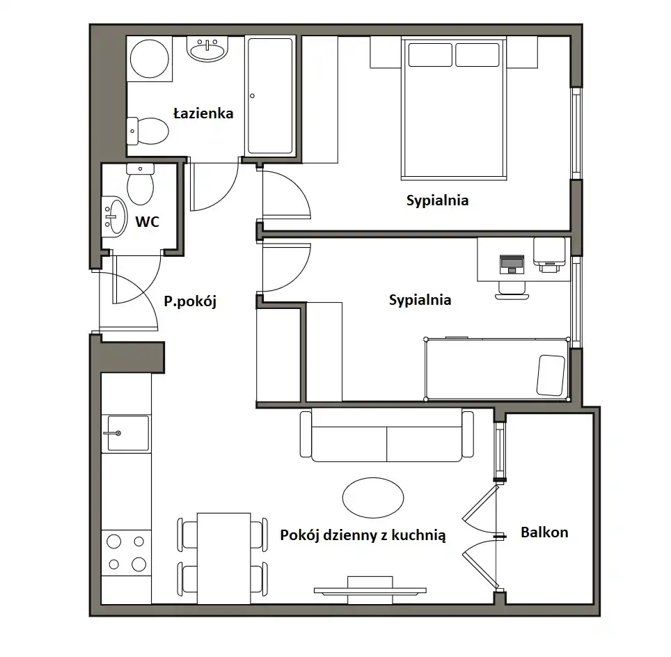 - Charakterystyka mieszkania 52.65 m2, 3 pokoje