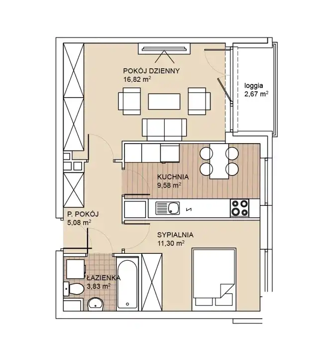 - Balkon (2,67 m²): Twoja prywatna strefa relaksu – idealna na poranną kawę lub wieczorne wyciszenie.