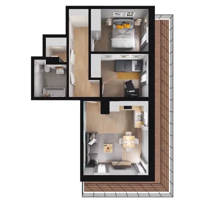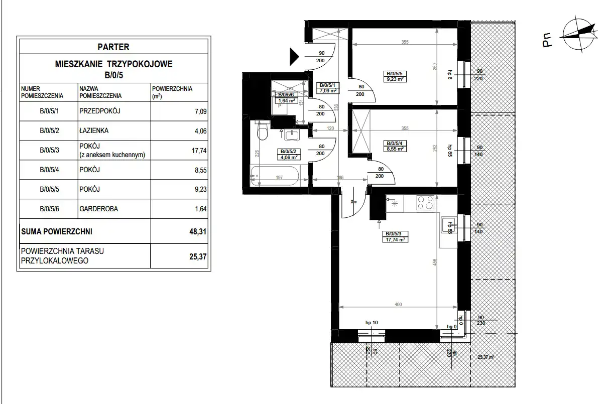 - Charakterystyka mieszkania 48.31 m2, 3 pokoje