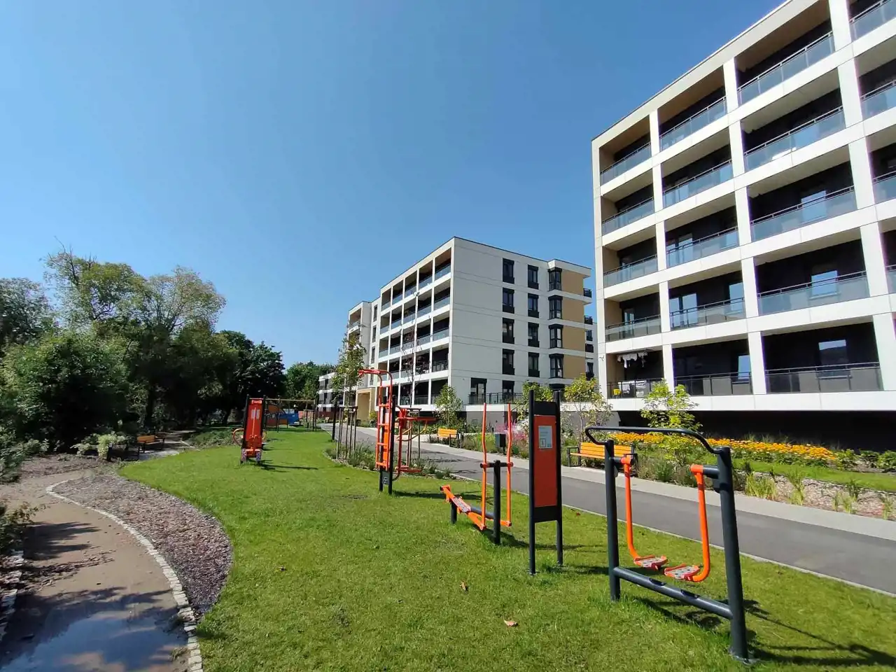 Doskonały adres dla wszystkich, którzy cenią zaciszne, przyjazne otoczenie sprzyjające zachowaniu wewnętrznej równowagi. Bogactwo roślin, zielone przestrzenie wypełnione krzewami i klombami kwiatów stworzą wymarzone okoliczności dla błogiego relaksu i regeneracji sił. Niewątpliwą atrakcją będzie teren rekreacyjny zaaranżowany od południowej strony osiedla. Znajdą się na nim miejsca aktywnego wypoczynku i plac zabaw, dzięki którym świetnie spędzą tam czas zarówno dzieci, jak i dorośli. Sprzęty do ćwiczeń na powietrzu, miejsca idealne do gry i zabawy, ścieżki spacerowo-rowerowe zachęcą do wyjścia z domu oraz wspólnego delektowania się wolnymi chwilami.