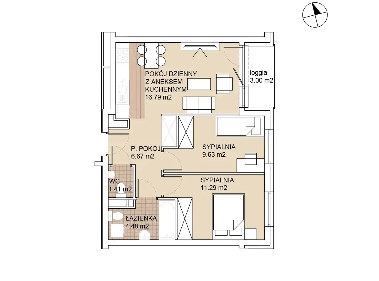 - Charakterystyka mieszkania 50.23 m2, 3 pokoje