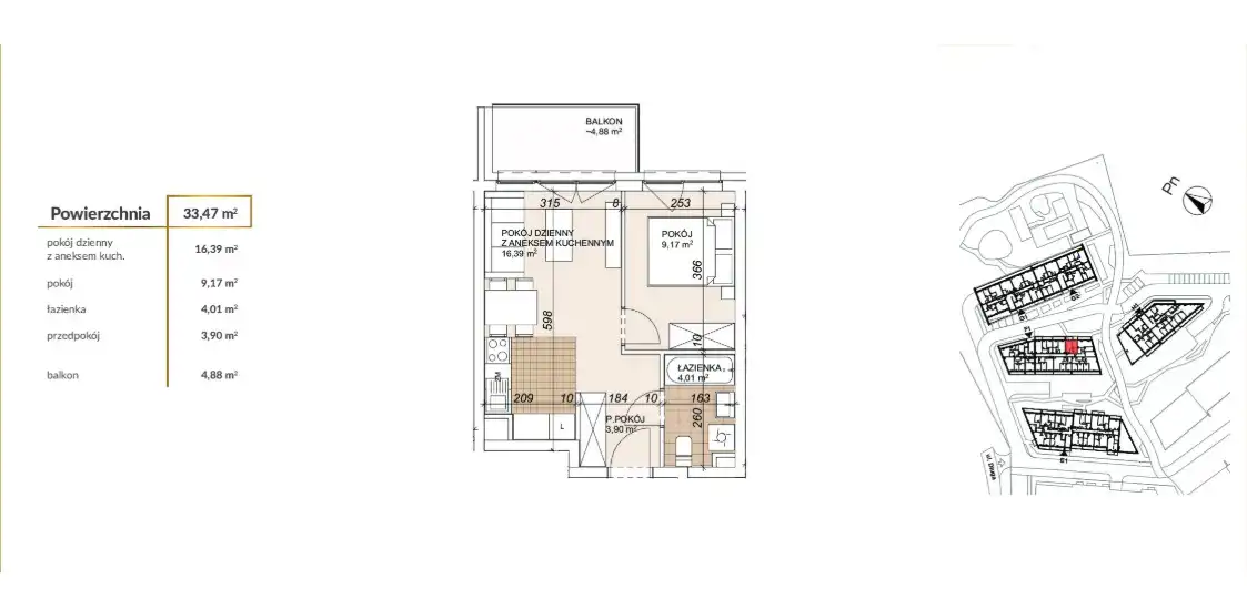 - Charakterystyka mieszkania 33.47 m2, 2 pokoje