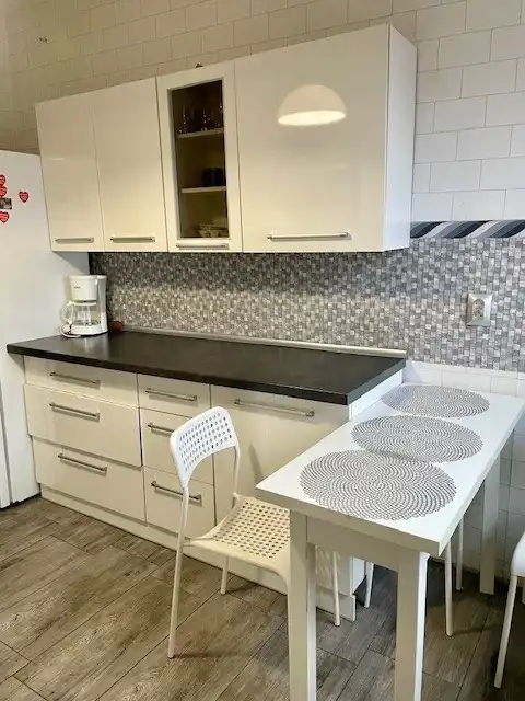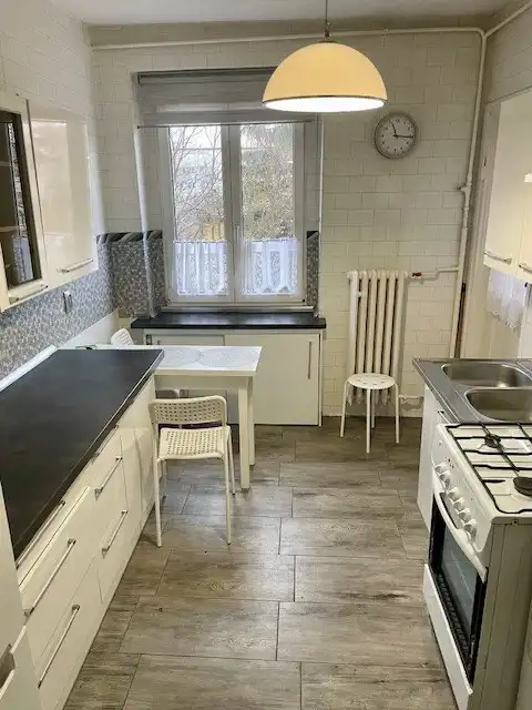 Standard wykończenia: na podłodze parkiet i kafle, okna PCV, ogrzewanie centralna z sieci miejskiej, woda ciepła z pieca gazowego.