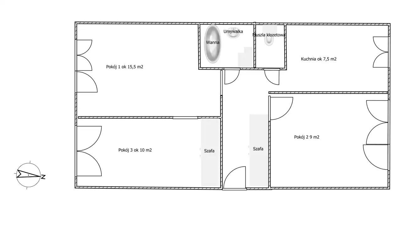 - Charakterystyka mieszkania 53.9 m2, 3 pokoje