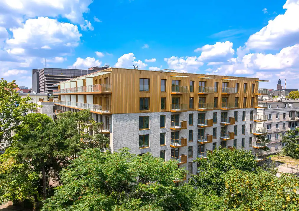 W nowoczesnym 6-piętrowym budynku zaprojektowano 183 apartamenty w rozkładzie 1-, 2-, 3- i 4-pokojowym – każdy z nich z balkonem, ogrodem lub tarasem.