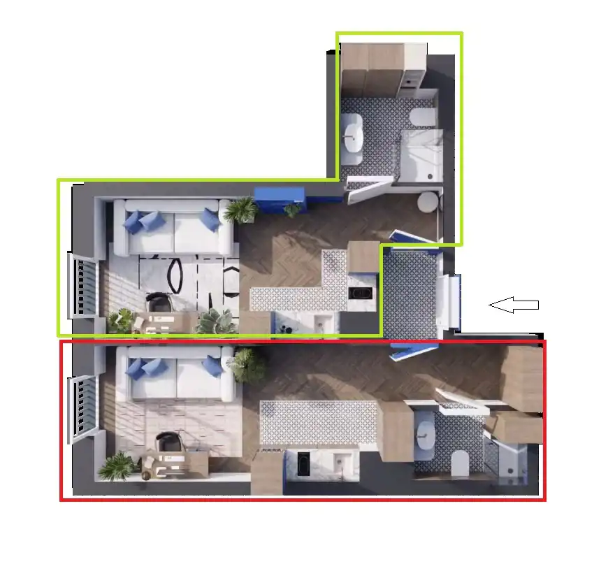 - Charakterystyka mieszkania 44.3 m2, 2 pokoje