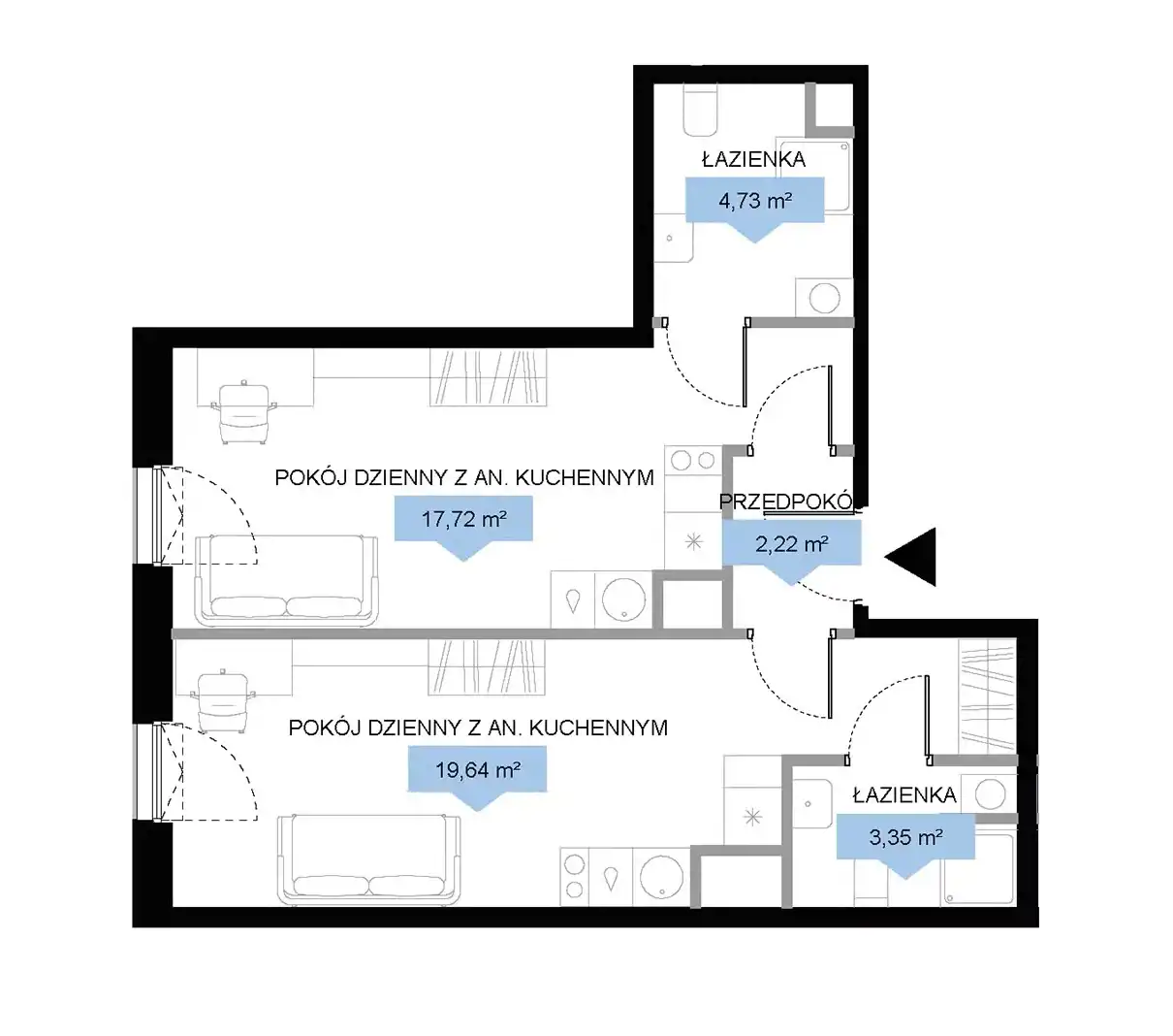 - Rozkład mieszkania 1p piętro