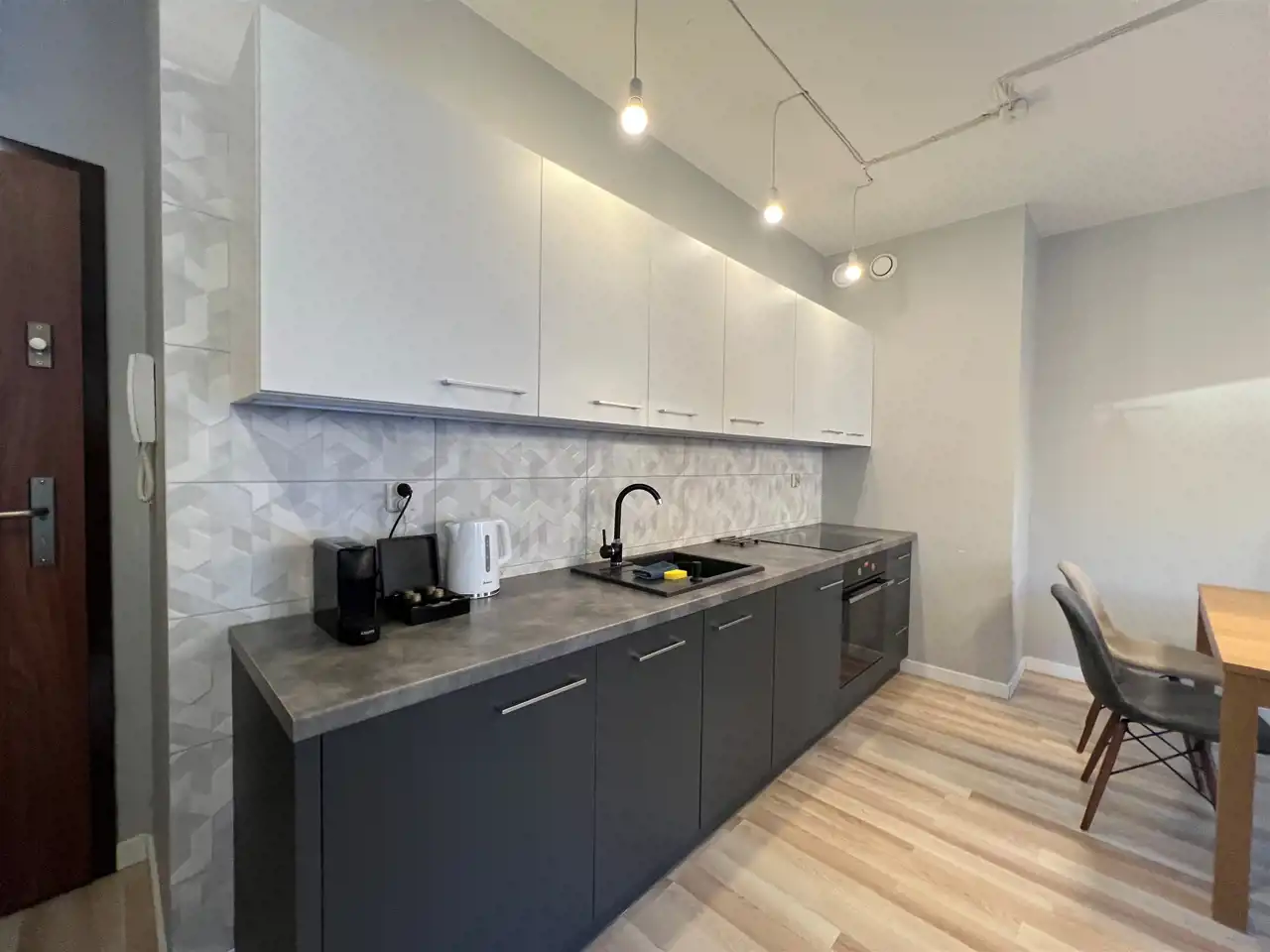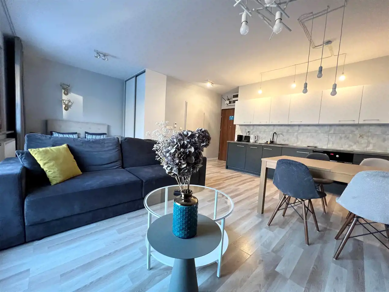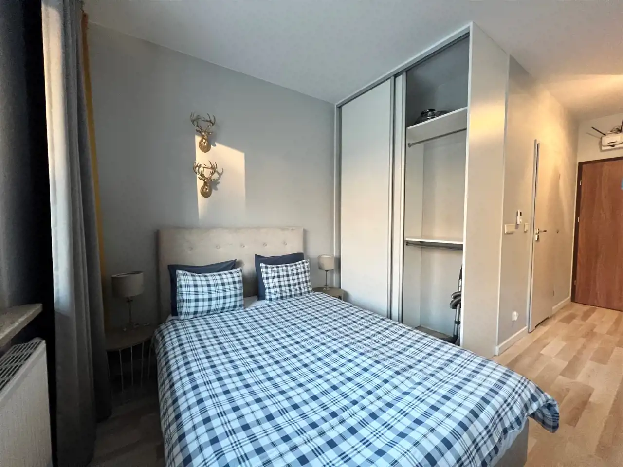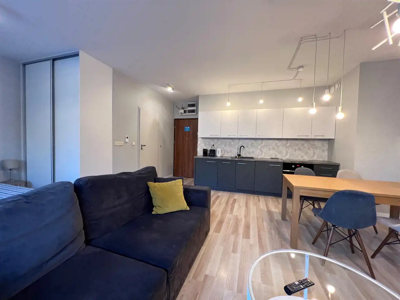 W skład wyposażenia mieszkania wchodzi: zmywarka, piekarnik, płyta elektryczna, lodówka w zabudowie, duża szafa. Ponad to mieszkanie jest w pełni umeblowane.