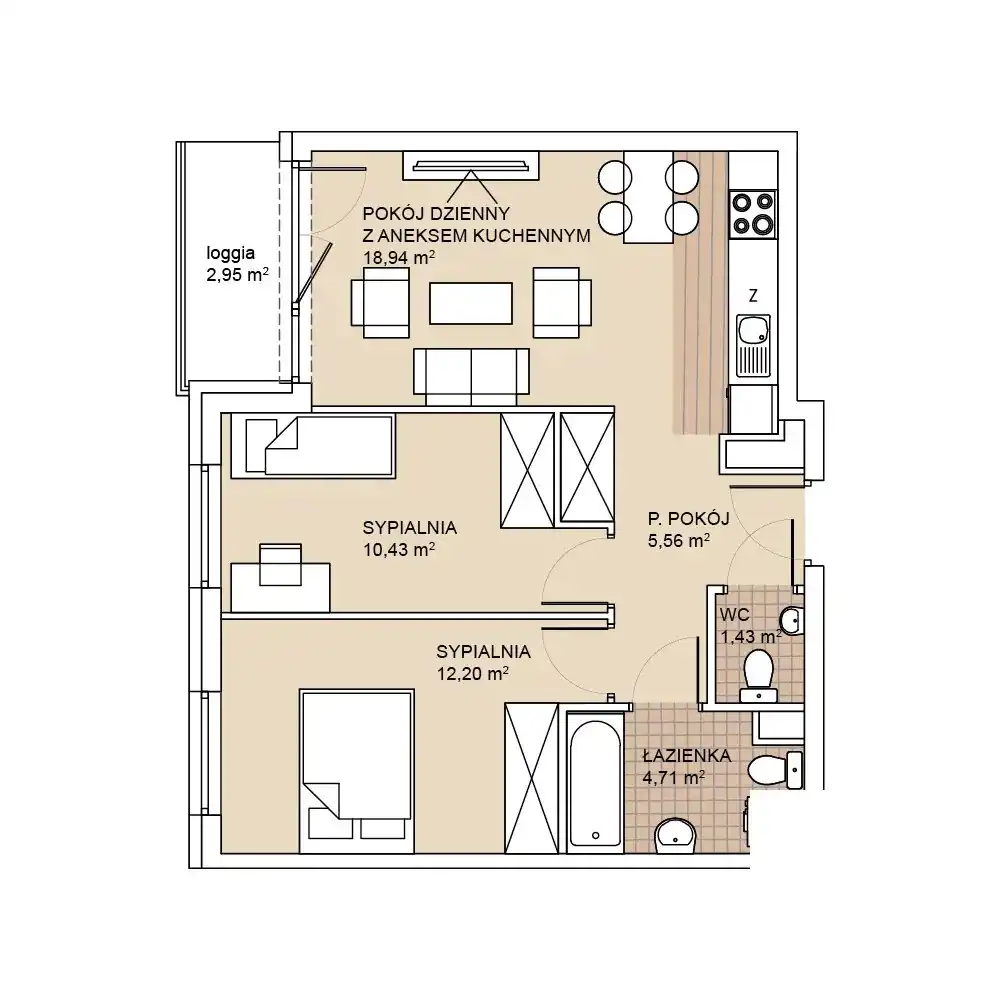 - Charakterystyka mieszkania 53.27 m2, 3 pokoje