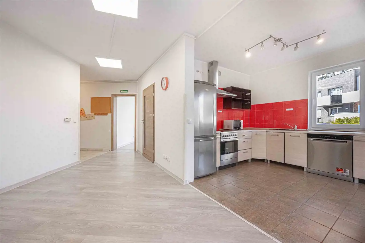 - salonu z aneksem kuchennym (możliwość zamknięcia kuchni, która posiada swoje okno)