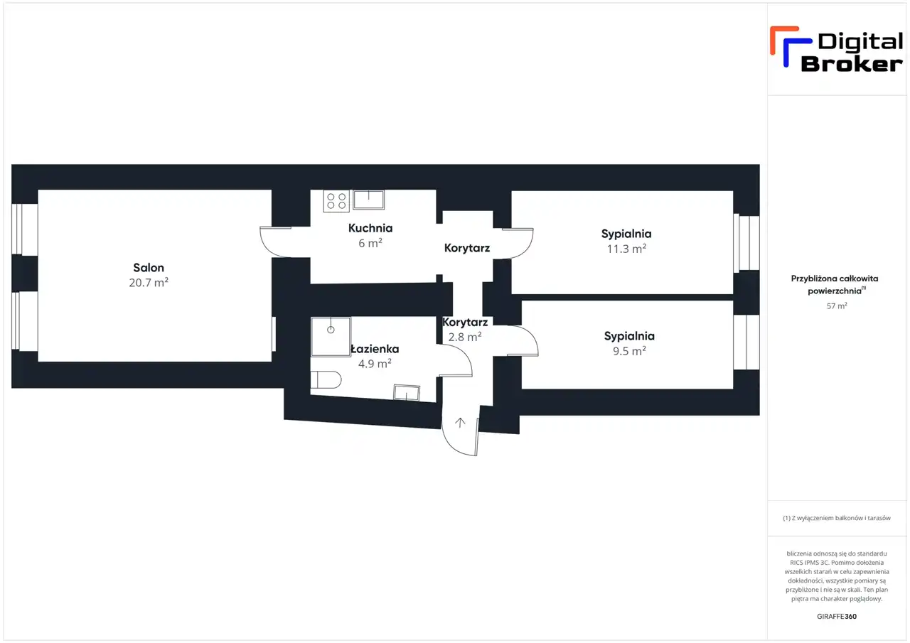 - Charakterystyka mieszkania 57 m2, 3 pokoje