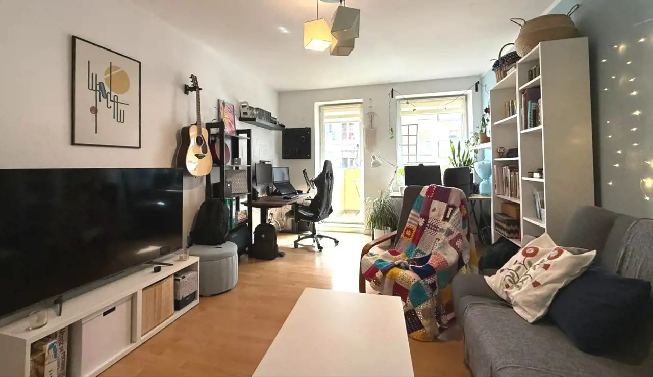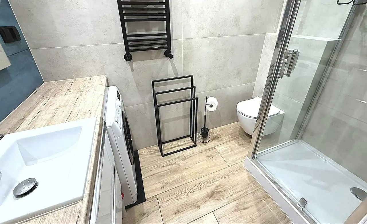 Nieruchomość charakteryzuje się pełnym rozkładem pomieszczeń, co zapewnia komfort i wygodę codziennego użytkowania. W skład mieszkania wchodzą dwa niezależne pokoje, osobna, jasna kuchnia z oknem oraz przestronna łazienka z WC. Dużym atutem jest zadbana i nowoczesna kuchnia, w pełni wyposażona w sprzęty AGD: kuchenkę, piekarnik, zmywarkę oraz okap. Dodatkowo przewidziano miejsce na duży stół jadalny, co sprzyja wspólnemu spędzaniu czasu.