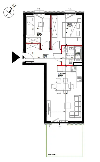 Mieszkanie składa się z przestronnego pokoju dziennego z aneksem kuchennym (23.10m2), sypialni (11.44m2), drugiej sypialni(8.86m2),ustawnego przedpokoju z miejscem na szafę(6.94m2), łazienki(4.16m2) oraz dodatkowo ogródka (ok.14m2) od południa.