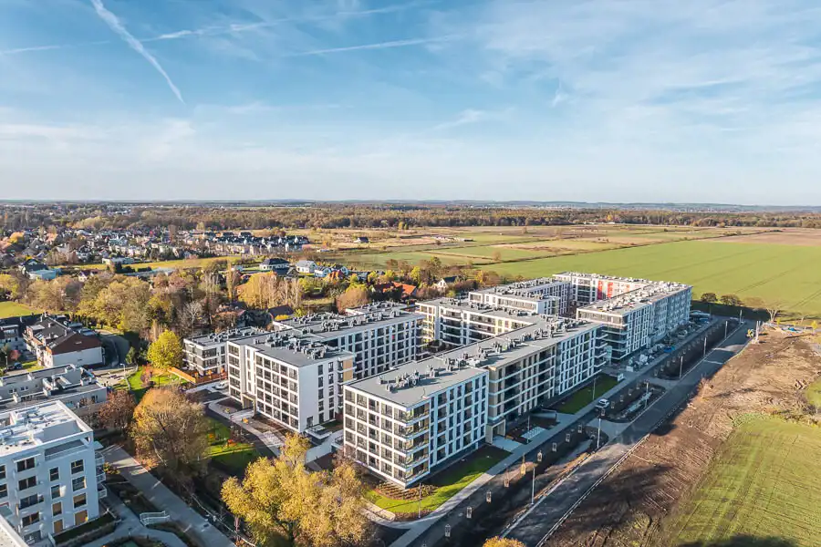 Komunikacja - Inwestycja w zacisznej części Wrocławia, z dala od intensywnego tempa centrum miasta. Jednocześnie dobra infrastruktura drogowa i środki transportu publicznego znajdujące się w najbliższej okolicy ułatwią mieszkańcom sprawną komunikację i dojazd do placu Grunwaldzkiego czy Rynku w kilkanaście minut. W otoczeniu osiedla zlokalizowane są żłobki, przedszkola, szkoły oraz osiedlowe sklepy i punkty usługowe, a trochę dalej także Centrum Handlowe Korona wraz z kinem Cinema City. Wszystko to umożliwi mieszkańcom rozrywkę i zaspokojenie codziennych potrzeb. W pobliżu jest również wiele terenów zielonych – Park Pawłowicki z Arboretum, Las Zakrzowski i wały nad rzeka Dobrą, które zapewniają przestrzeń do długich spacerów, wycieczek rowerowych i rodzinnych pikników.