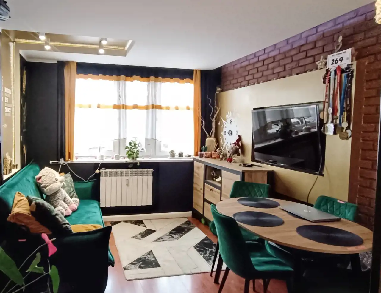 Mieszkanie przeszło kilka lat temu kosztowny remont podczas którego wymieniono: instalację elektryczną, położono nowe podłogi (panele), na ścianach gładź gipsowa i ozdobne płytki/cegiełka, zainstalowano podwieszane sufity z oświetleniem ledowym, zakupiono sprzęt agd., meble do kuchni i pozostałych pomieszczeń.