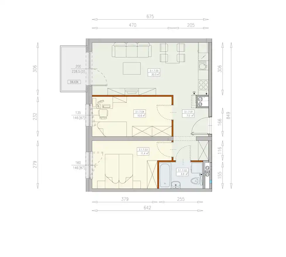 - Charakterystyka mieszkania 53.4 m2, 3 pokoje
