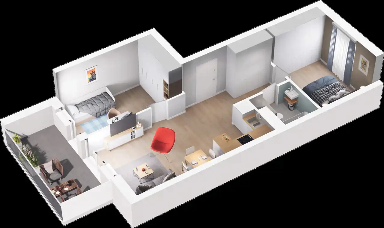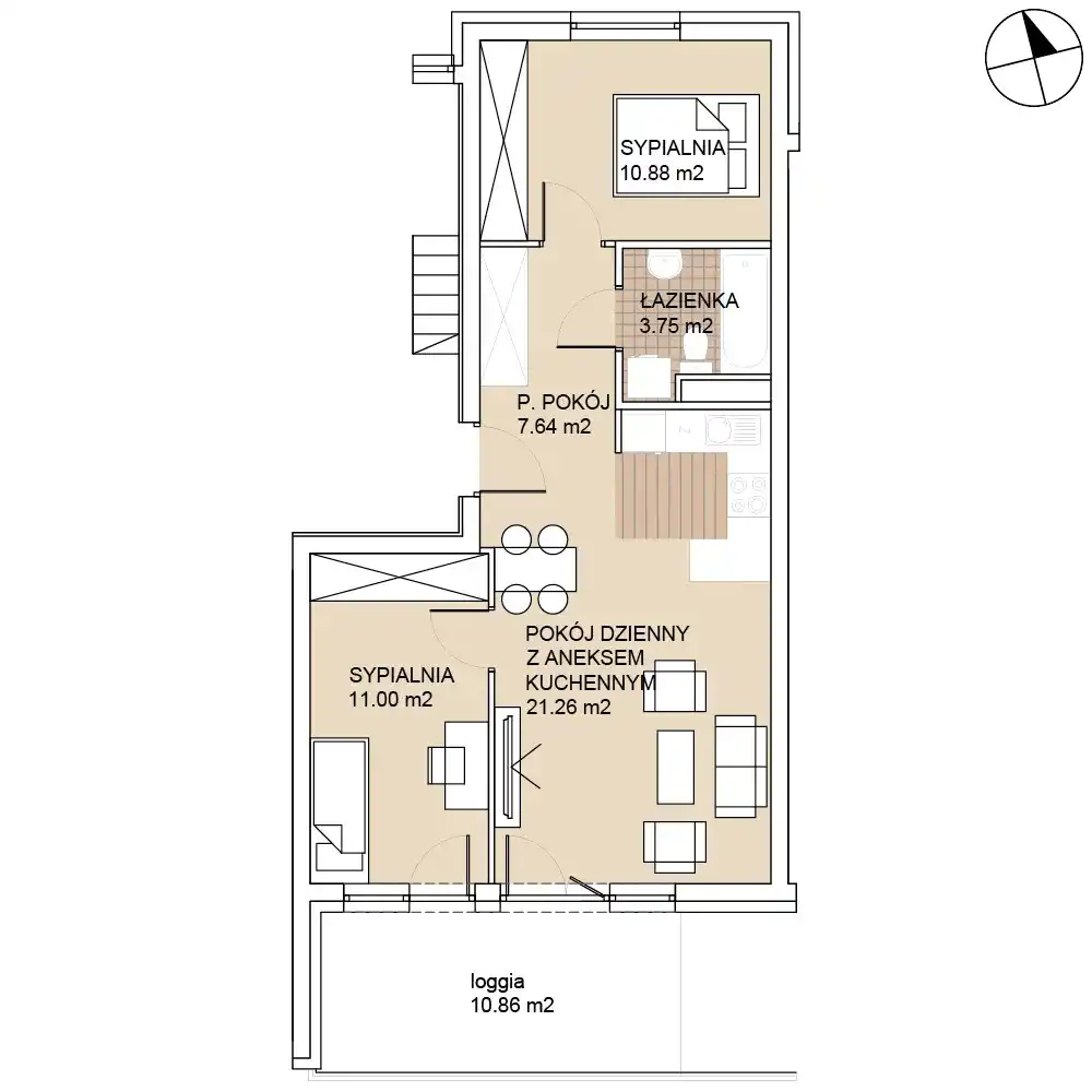 - Charakterystyka mieszkania 54.53 m2, 3 pokoje