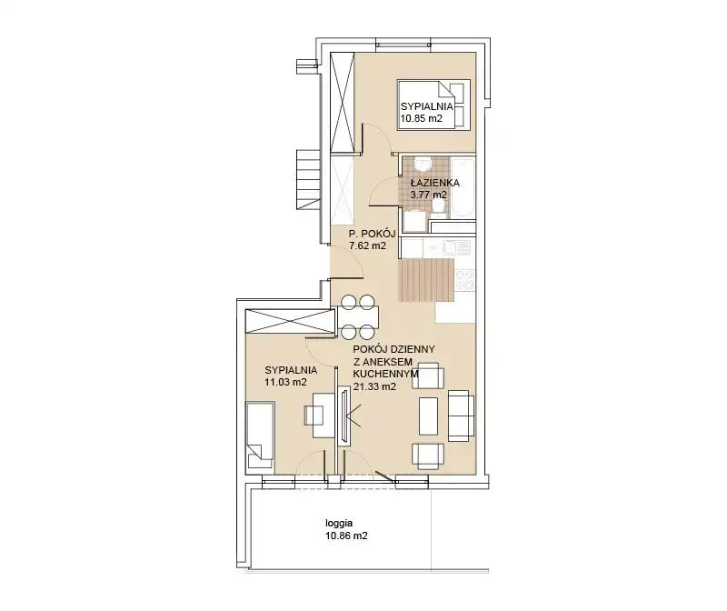 - Charakterystyka mieszkania 54.6 m2, 3 pokoje