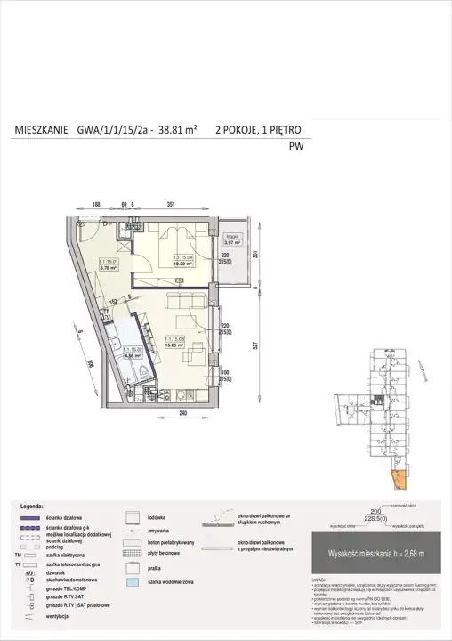- Charakterystyka mieszkania 38.81 m2, 2 pokoje