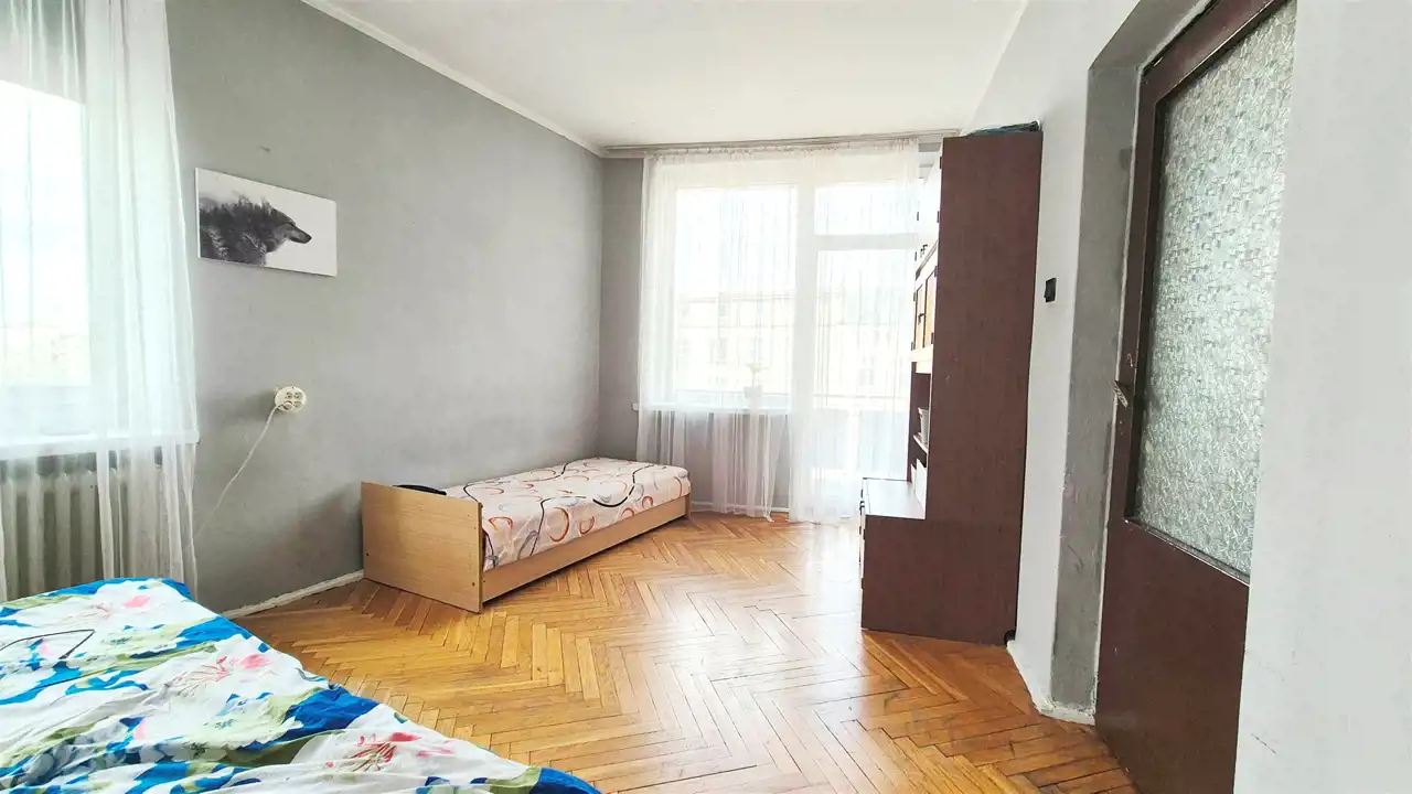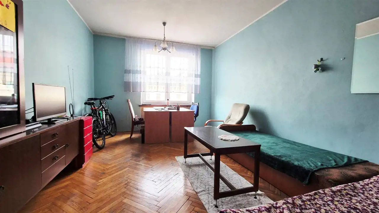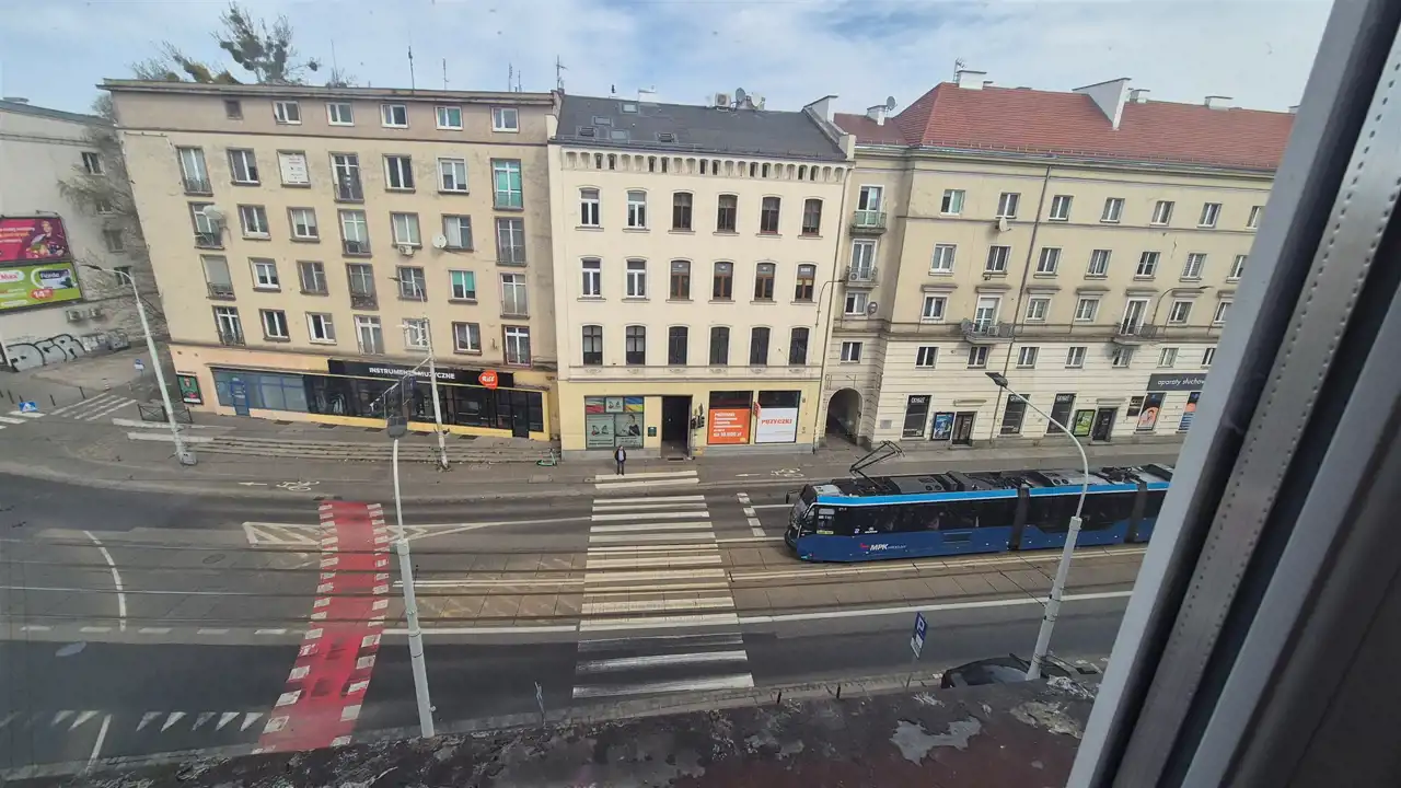 Dwa przestronne pokoje i duża kuchnia w bloku z cegły o powierzchni 63 m2 usytuowanego na 3 piętrze w 4 piętrowym w pobliżu Arkad Wrocławskich.