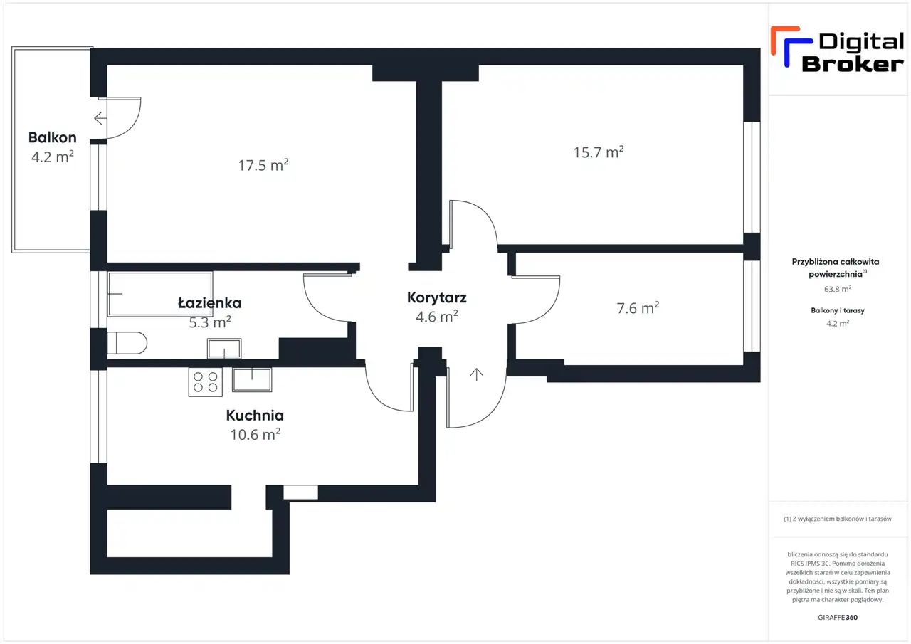 - Charakterystyka mieszkania 62.93 m2, 3 pokoje