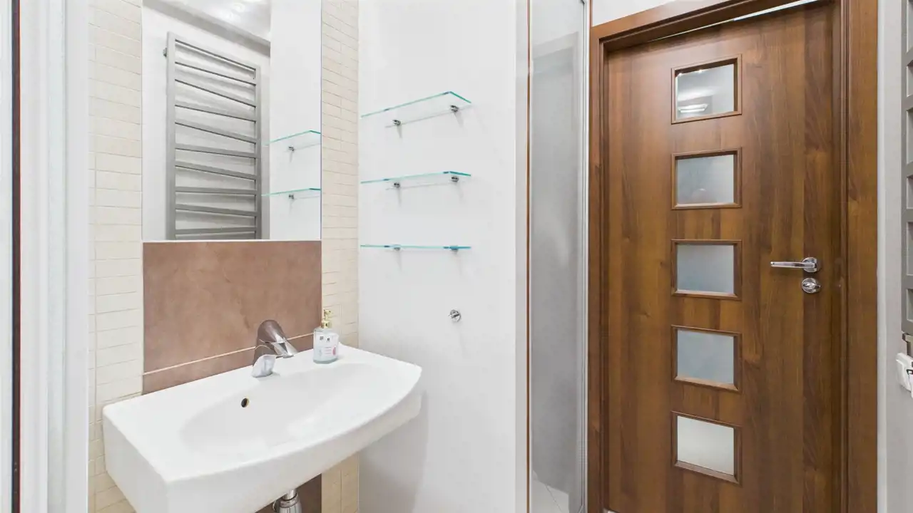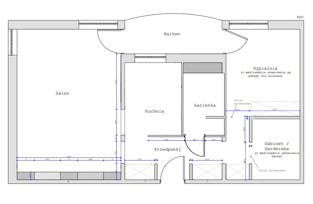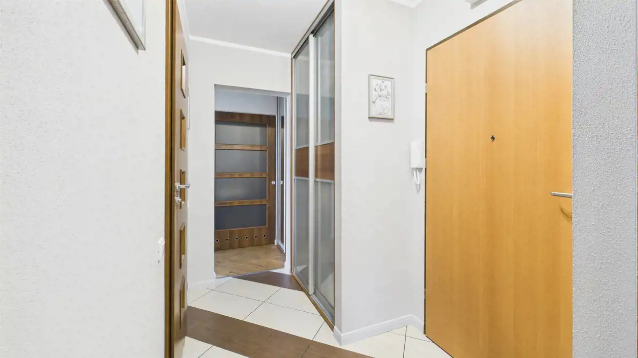 Przedpokój – dwie pojemne szafy z drzwiami przesuwnymi.
