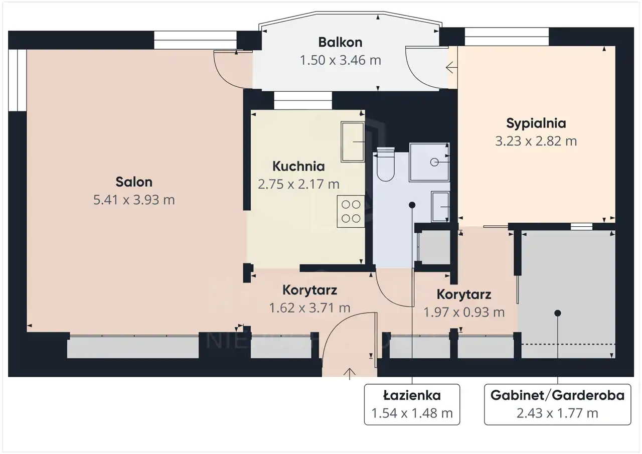 - Charakterystyka mieszkania 55.3 m2, 2 pokoje