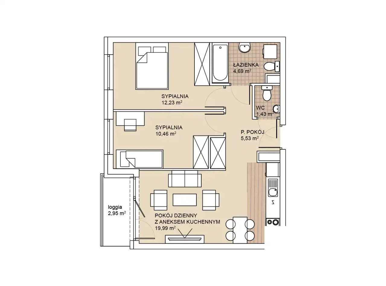 - Charakterystyka mieszkania 54.33 m2, 3 pokoje